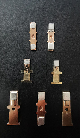 公司立足于環(huán)保型電接觸材料的研究,自主開發(fā)了擁有自主知識產(chǎn)權(quán)的“銀-錫銦復合氧化物電工觸點材料及其制備工藝”,采用化學包覆法,成功在"銀氧化錫"材料中添加特殊材料,增強了材料的特殊性能,拓寬了材料的應用領(lǐng)域。以 “銀氧化錫銦觸點材料”為核心技術(shù),不斷開發(fā)出了“電接觸線材、復合帶材、電接觸元件和組件”等一系列多類型產(chǎn)品;核心技術(shù)均獲得發(fā)明專利授權(quán)。